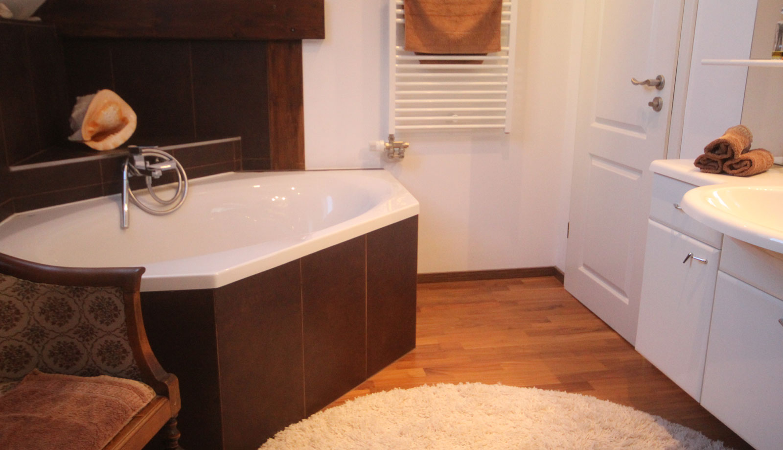 Das geräumige Bad mit hochwertiger Badewanne und Dusche, lädt zum relaxen ein.